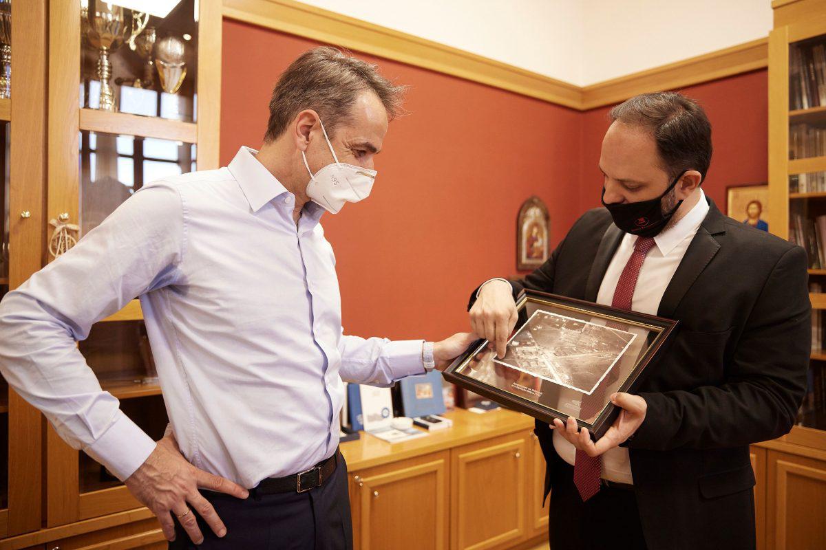 Η συνάντηση έγινε σε πολύ θετικό κλίμα και ο κ. Δαρδαμανέλης χάρισε στον Πρωθυπουργό μία πρωτότυπη αεροφωτογραφία της Καλαμαριάς, από τον Α’ Παγκόσμιο Πόλεμο, του 1916, κομμάτι από το αρχείο του Μουσείου Φωτογραφίας, Χρήστος Καλεμκερής, και την ασημένια «Αργώ» σύμβολο της Καλαμαριάς.