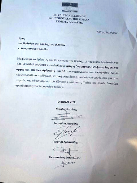 Αρνήθηκε να υπογράψει το αίτημα ονομαστικής ψηφοφορίας του ΠΑΣΟΚ για το νόμο Γκάκα που καταργεί το ΕΣΥ - Αναστάτωση από τη διαφοροποίηση του