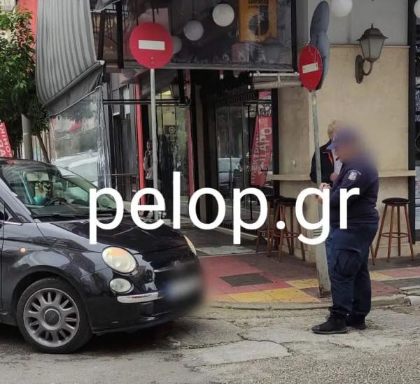 Μάλιστα στη συμβολή των οδών Αγίου Ανδρέου και Γεροκωστοπούλου, τη στιγμή που βεβαίωνε παράβαση σε οδηγό για παράνομη στάθμευση, ο Αστυνομικός συνομιλούσε με άλλους δύο πολίτες από διπλανή καφετέρια, οι οποίοι και εκείνοι δεν φορούσαν μάσκα.