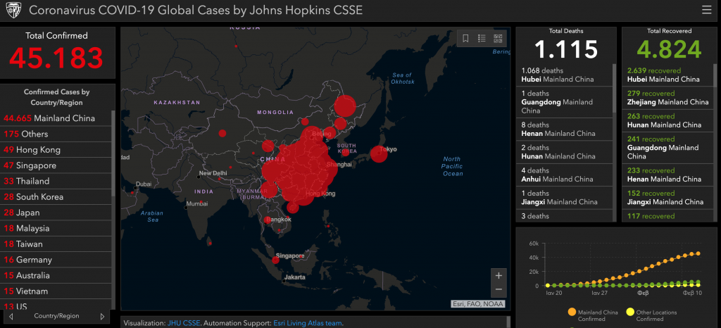 Πάνω από 44.000 κρούσματα Ο συνολικός αριθμός των θανάτων εξαιτίας της επιδημίας ανήλθε σε 1.113 ως τα μεσάνυχτα της 11ης Φεβρουαρίου, ενώ ο συνολικός αριθμός των επιβεβαιωμένων κρουσμάτων ανέρχεται σε 44.653.