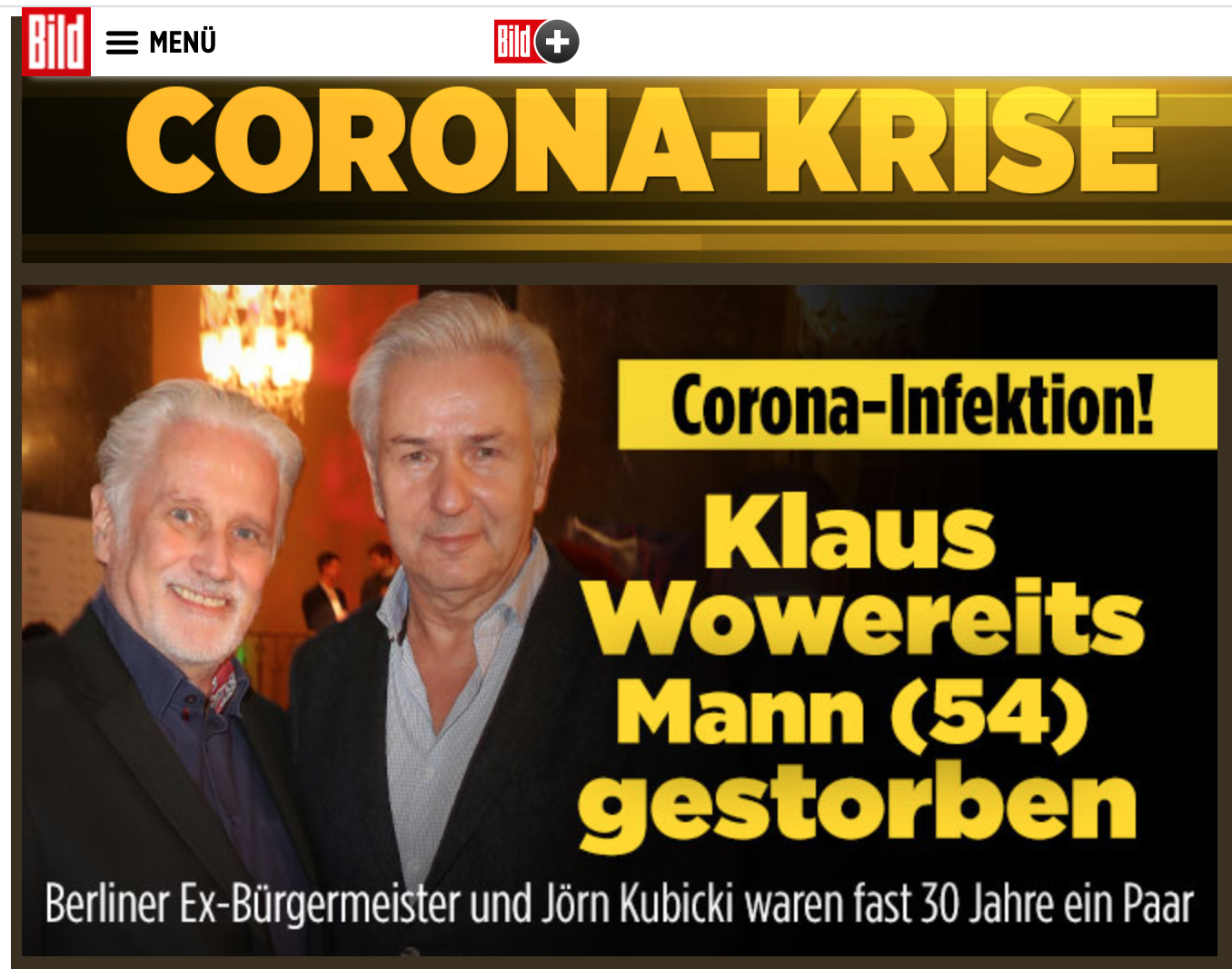 Από επιπλοκές του νέου κορονοϊού πέθανε σήμερα ο επί 30 χρόνια σύντροφος του πρώην Δημάρχου του Βερολίνου Κλάους Βόβεράιτ.