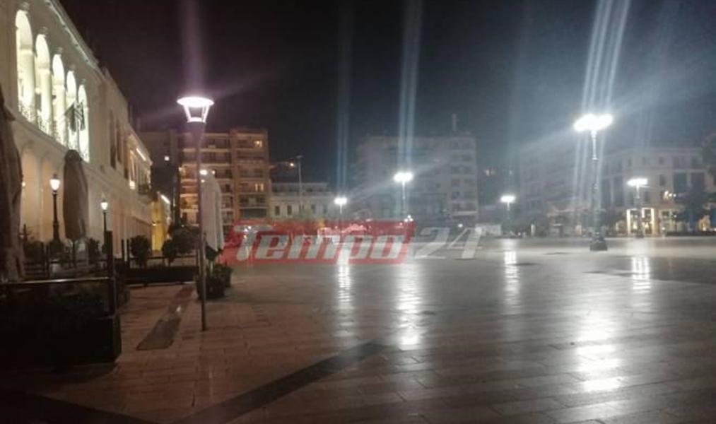 Μια εικόνα απόκοσμη παρατηρήθηκε και στην Πάτρα το Σάββατο το βράδυ εξαιτίας της απαγόρευσης κυκλοφορίας.