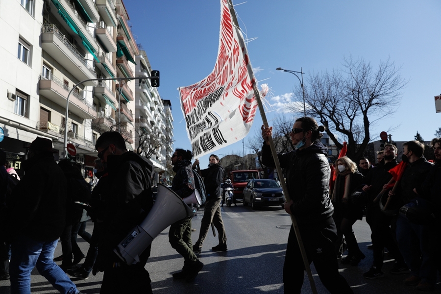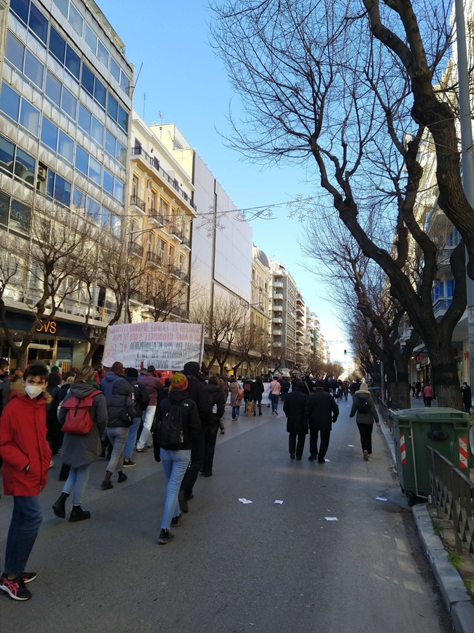 Σε εξέλιξη βρίσκεται η πορεία. Οι συμμετέχοντες κινούνται τώρα από τον Πεζόδρομο Αγίας Σοφίας επί της Τσιμισκή.