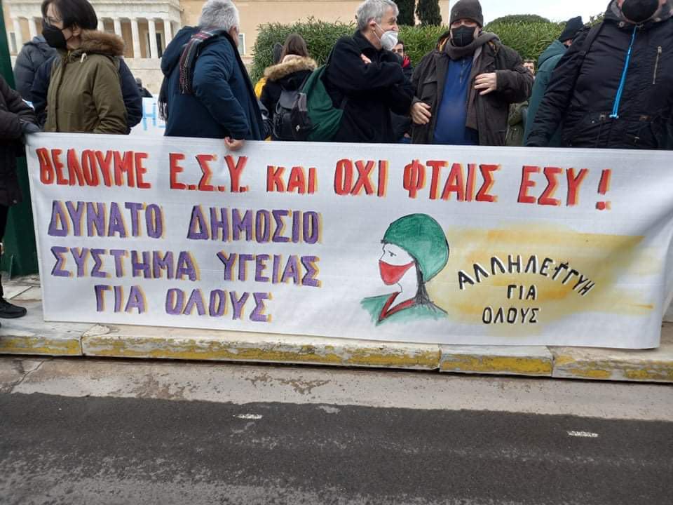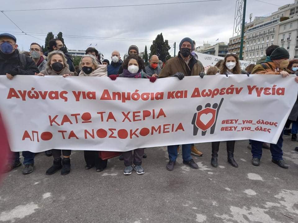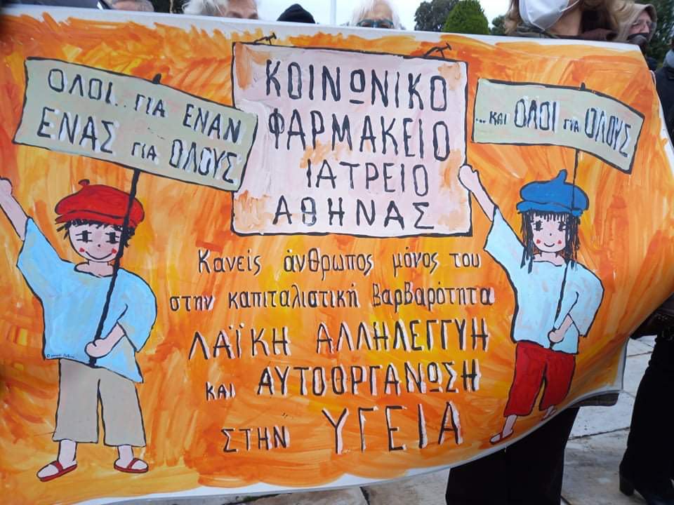 Ανάμεσα στους διοργανωτές της διαδήλωσης ο Οργανισμός Συλλογικοτήτων Αττικής και η Πρωτοβουλία για τη Δημόσια Υγεία.