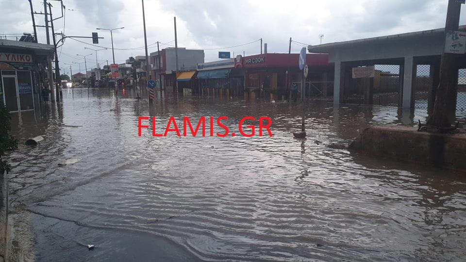Το νερό έχει μπει μέσα σε πάρα πολλά καταστήματα, καφέ και άλλες επιχειρήσεις που λειτουργούν στην περιοχή, αναφέρει το flamis.gr. «Μισό μέτρο είναι το νερό μέσα σε καφέ», είπε ένας από τους εργαζόμενους του Δήμου. Η κυκλοφορία έχει διακοπεί αφού… ούτε με αγροτικό δεν μπορεί να περάσει κάποιος, αναφέρει η ίδια πηγή.