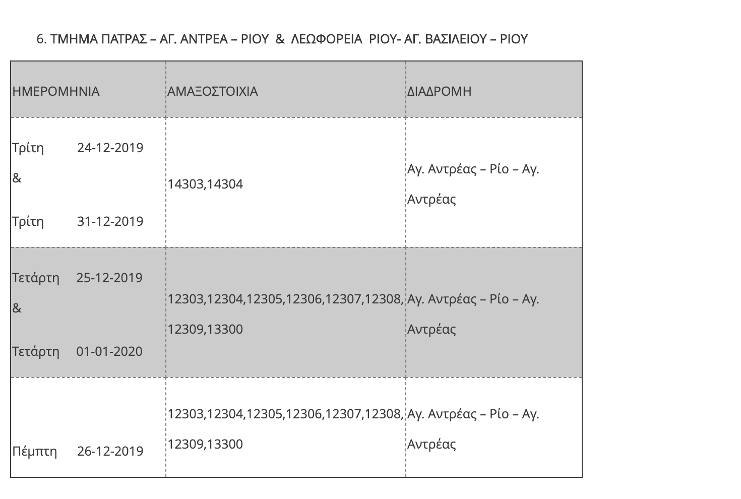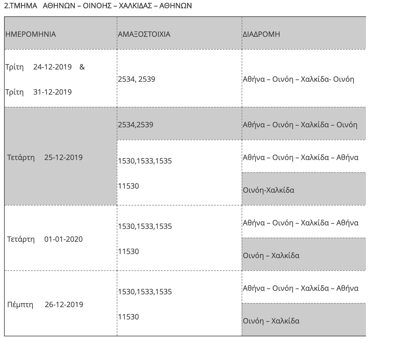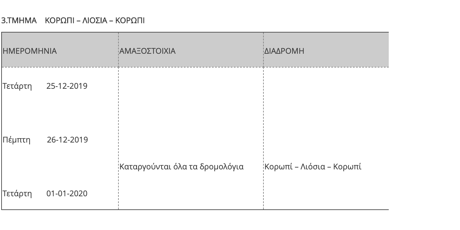 Η ΤΡΑΙΝΟΣΕ Α.Ε. ενημερώνει το επιβατικό κοινό ότι, όπως κάθε χρόνο, παραμονή και ανήμερα των Χριστουγέννων και της Πρωτοχρονιάς αναστέλλεται η κυκλοφορία ορισμένων τοπικών δρομολογίων του δικτύου καθώς και των προαστιακών γραμμών, λόγω της μειωμένης επιβατικής κίνησης που παρατηρείται σε συγκεκριμένες διαδρομές.
