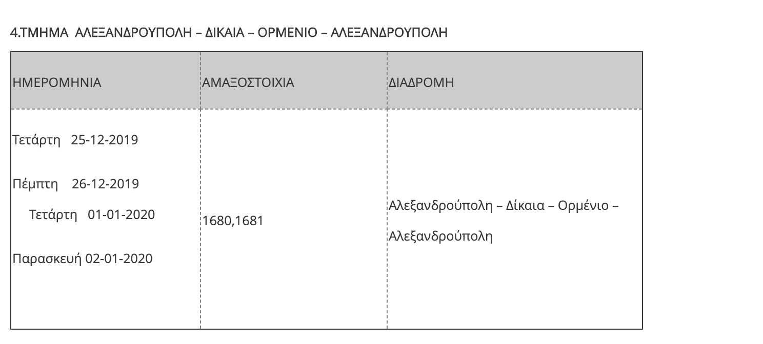 Υπενθυμίζεται ότι, Η ΤΡΑΙΝΟΣΕ Α.Ε. για την περίοδο των εορτών προχώρησε στην αύξηση των δρομολογίων της στην διαδρομή Αθήνα – Θεσσαλονίκη – Αθήνα με στόχο την καλύτερη εξυπηρέτηση των επιβατών της, ενώ αύξησε σημαντικά τις προσφερόμενες θέσεις και στις υπόλοιπες αμαξοστοιχίες που κινούνται στο συγκεκριμένο δίκτυο.