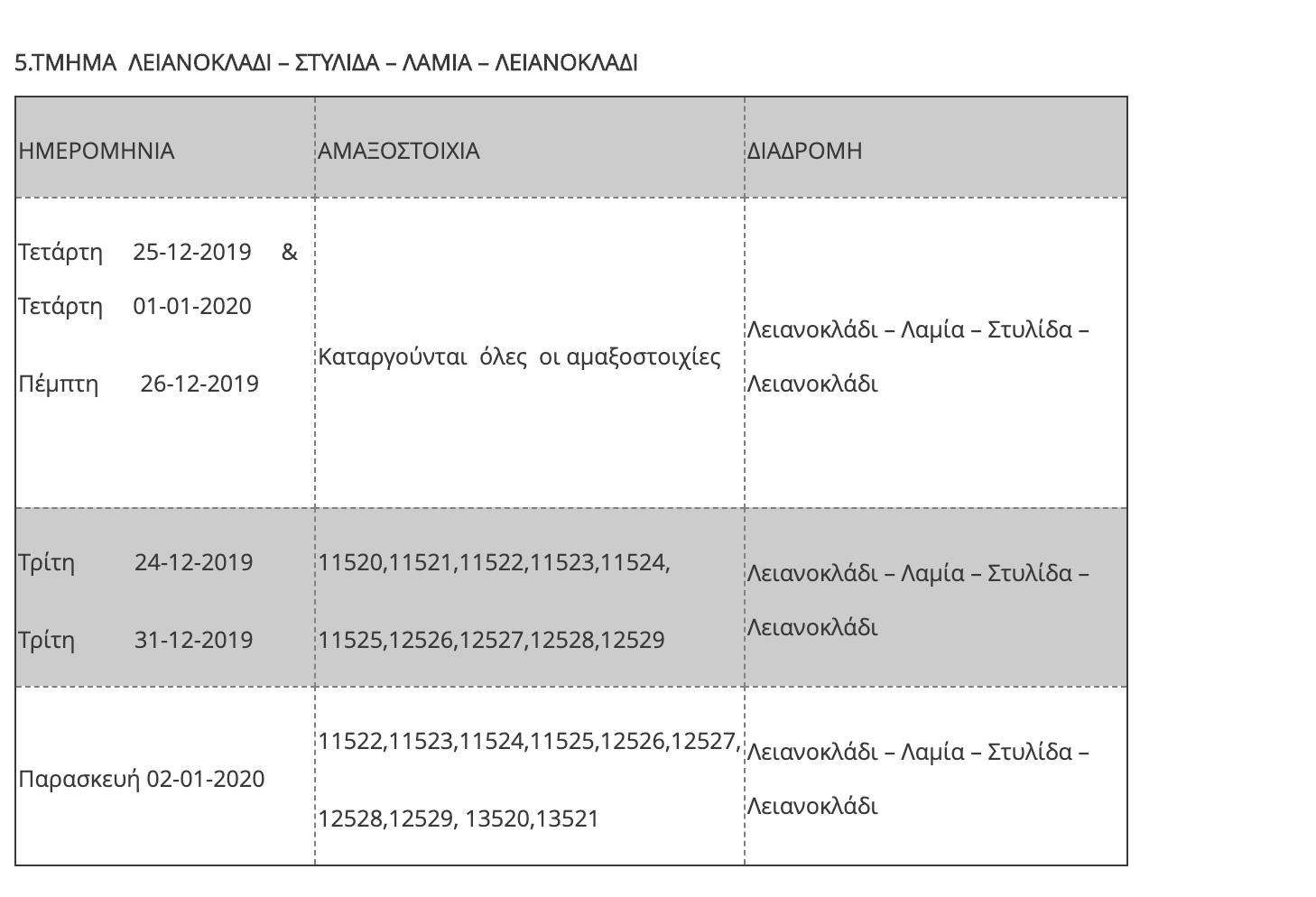 Ποια δρομολόγια των τρένων δεν θα γίνουν λόγω γιορτών