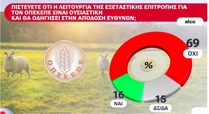 Όσον αφορά το σκάνδαλο του ΟΠΕΚΕΠΕ μόλις το 16% χαρακτηρίζει τη λειτουργία της Εξεταστικής Επιτροπής της Βουλής ουσιαστική και ότι θα αποδώσει ευθύνες έναντι του 69% που διαφωνεί.