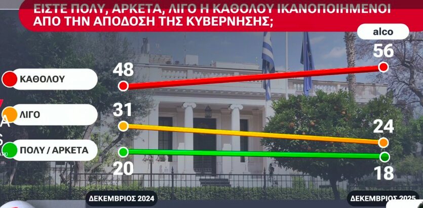 Καθόλου ικανοποιημένοι με την κυβέρνηση οι πολίτες Στο ερώτημα «Είστε πολύ, αρκετά, λίγο ή καθόλου ικανοποιημένοι από την απόδοση της κυβέρνησης » καταγράφονται τα εξής: