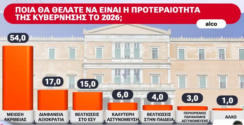 Στο ερώτημα «ποια θα θέλατε να είναι η προτεραιότητα της κυβέρνησης το 2026» οι πολίτες απαντούν: