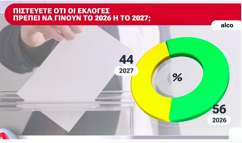Όσον αφορά στο ερώτημα «Πιστεύετε ότι οι εκλογές πρέπει να γίνουν το 2026 ή το 2027;» οι πολίτες απαντούν σε ποσοστό 44% το 2027 και σε ποσοστό 56% το 2026.