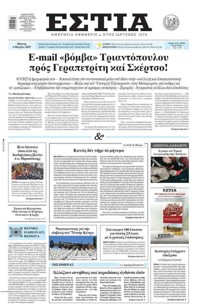 Δημοσίευμα Εστίας: E-mail «βόμβα» Τριαντόπουλου προς Γεραπετρίτη, Σκέρτσο για το «μπάζωμα» στα Τέμπη