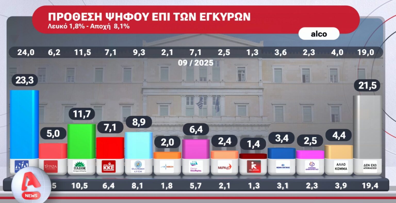 Δημοσκόπηση Alco: Οι αναποφάσιστοι έγιναν… 2ο κόμμα – Κρίση θεσμών «βλέπει» το 83%