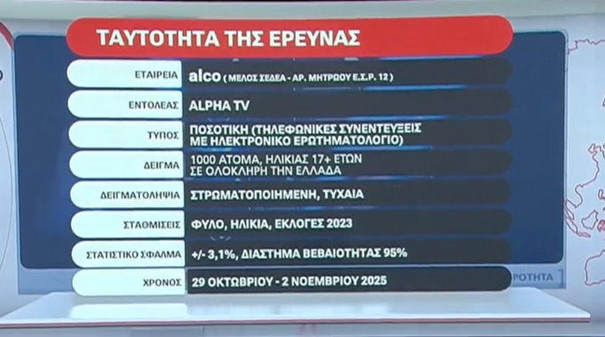 Όλες οι κάρτες της μεγάλης δημοσκοπησης για λογαριασμό του ALPHA