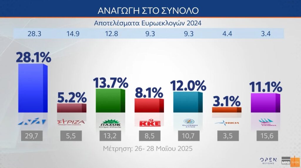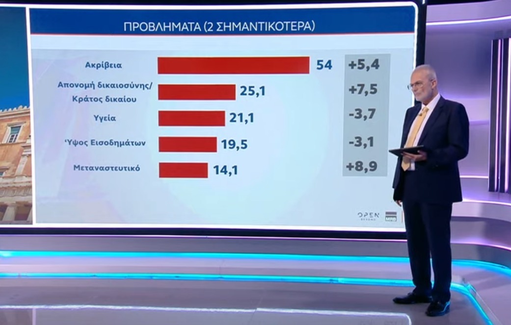 Δημοσκόπηση MRB: Πρώτη αλλά με απώλειες η ΝΔ, «αγκάθι» η ακρίβεια και ο ΟΠΕΚΕΠΕ για την κυβέρνηση