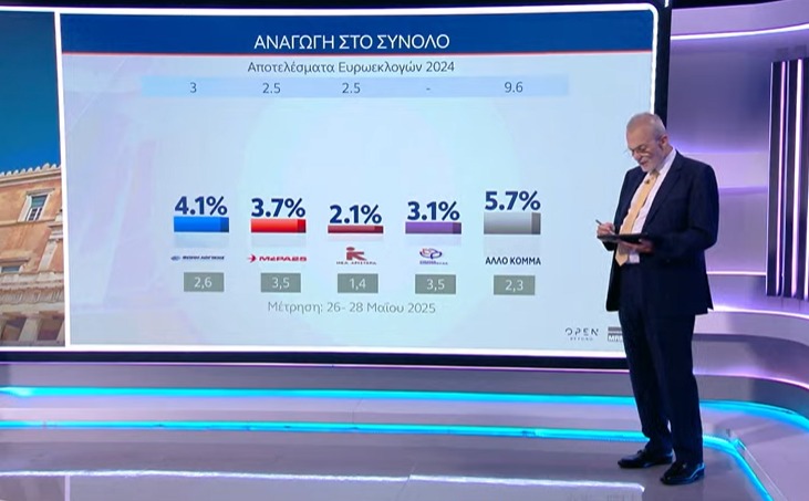 Όσον αφορά στην αναγωγή στο σύνολο τα ποσοστά που καταγράφουν τα κόμματα είναι: