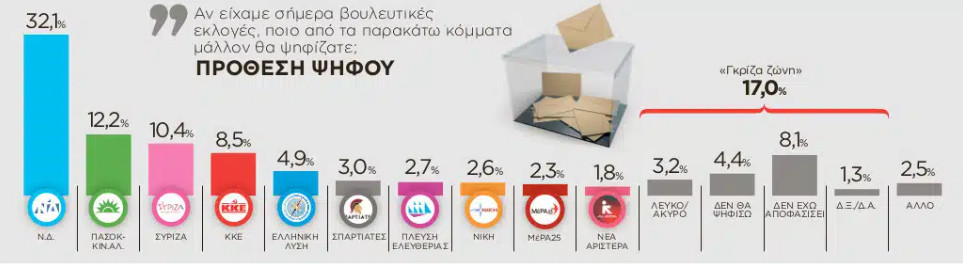 Δημοσκόπηση: Πρωτιά ΝΔ, τρίτος ο ΣΥΡΙΖΑ και… «άφαντη» η Νέα Αριστερά