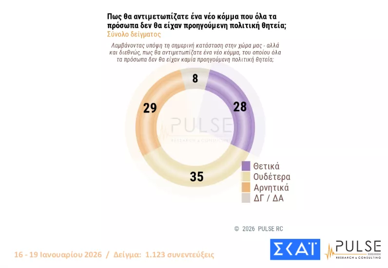 Η αποδοχή που τυγχάνει το «κόμμα» Καρυστιανού ανέρχεται στο 31% (θετικά και με ενδιαφέρον), ενώ του Αλέξη Τσίπρα είναι στο 19% και του Αντώνη Σαμαρά στο 10%.