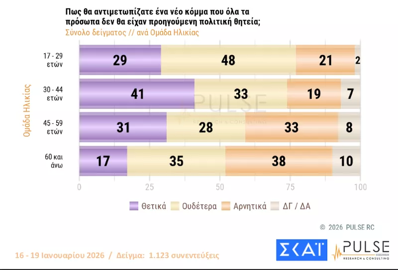 Η ηλικιακή κατανομή δείχνει τις ροπές, ενώ οι απόψεις για τα αίτια που προκαλούν την ανάγκη δημιουργίας νέων κομματικών σχηματισμών, συνθέτουν ένα σαφές μήνυμα προς το υπάρχον πολιτικό προσωπικό.