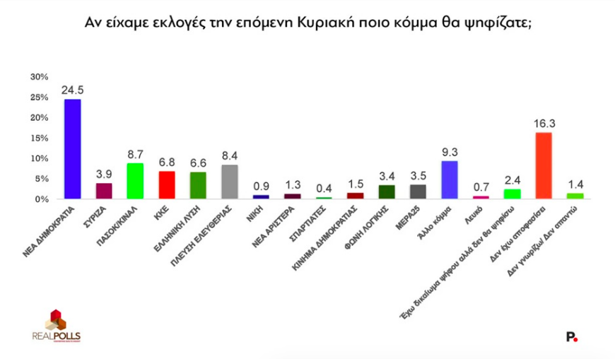 Δημοσκόπηση Real Polls: Ο σφυγμός των πολιτικών κομμάτων