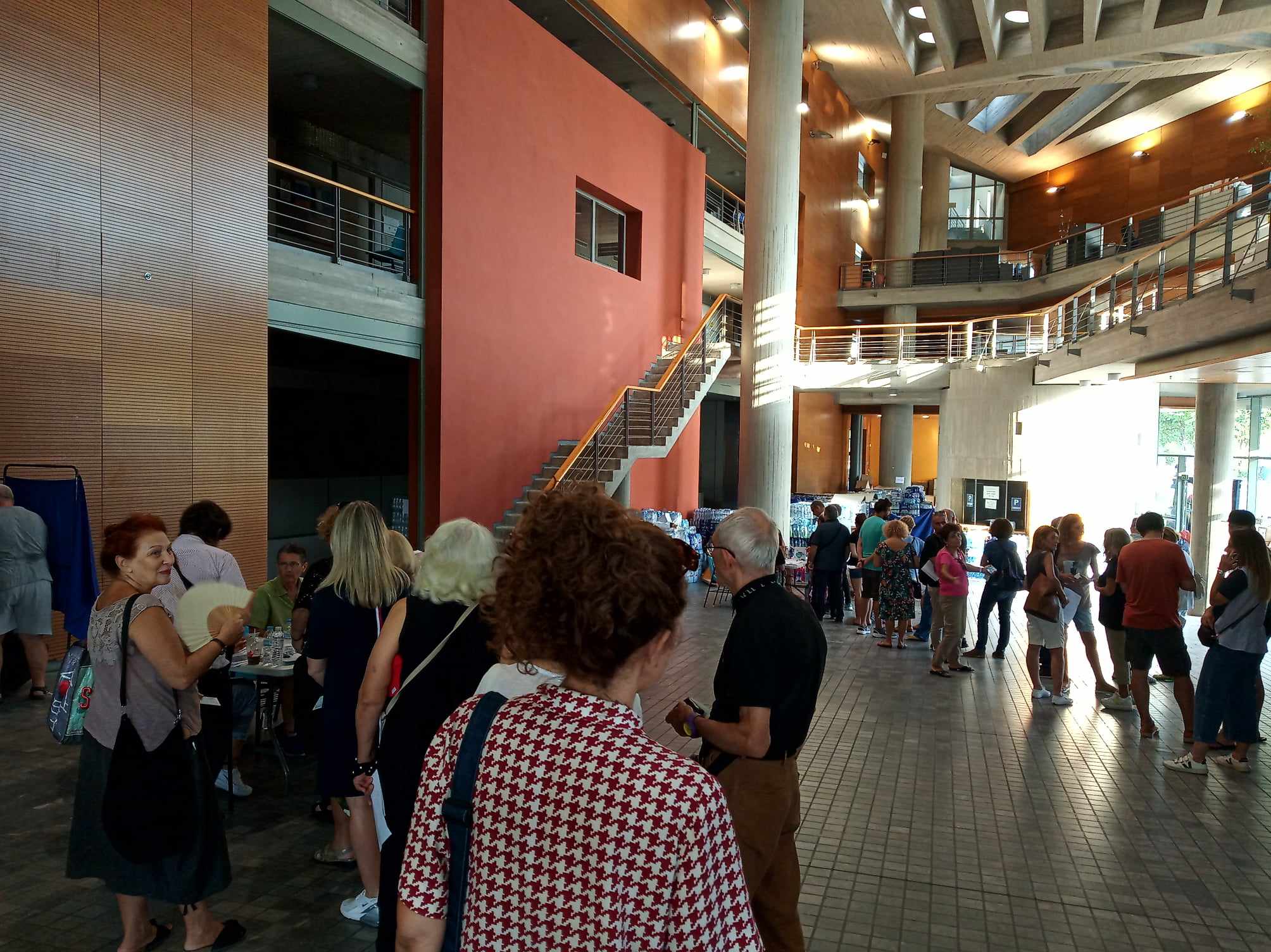 Οι ουρές συνεχίζονται στα εκλογικά τμήματα, καθώς τα μέλη που θέλουν να ψηφίσουν είναι πολλά.