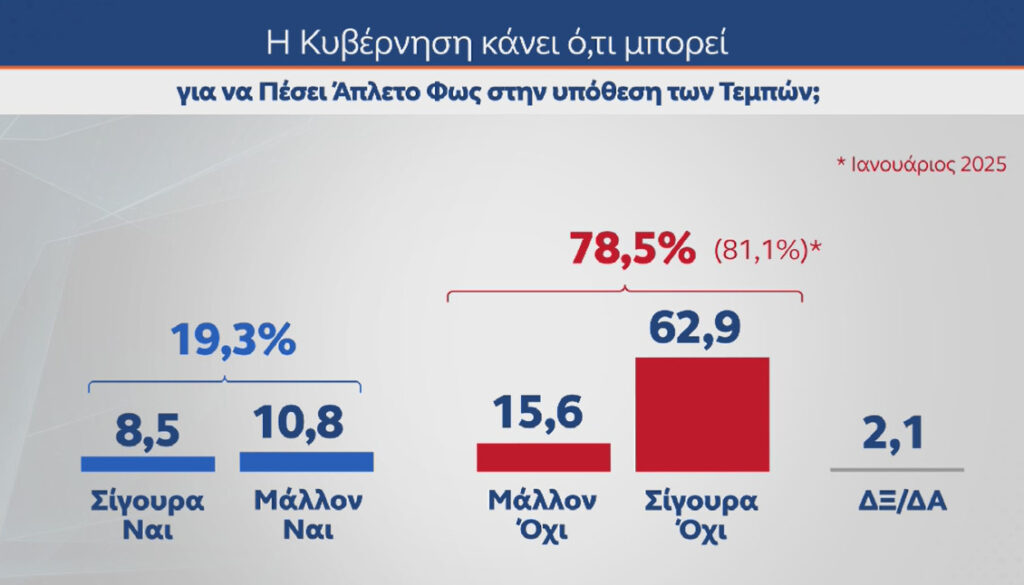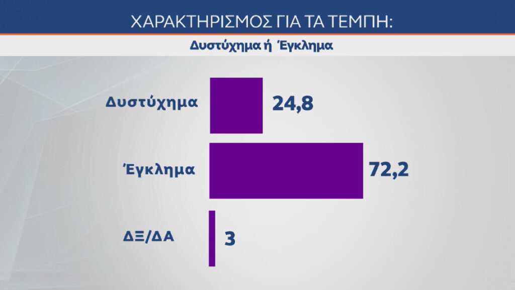 «Έγκλημα» τα Τέμπη για την πλειοψηφία των ερωτώμενων