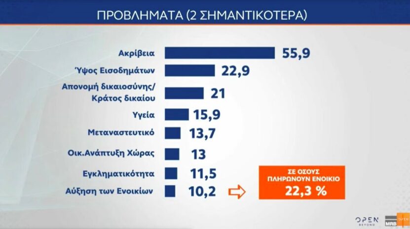 Ως προς τα βασικά προβλήματα η ακρίβεια παραμένει νο1 για τους πολίτες.