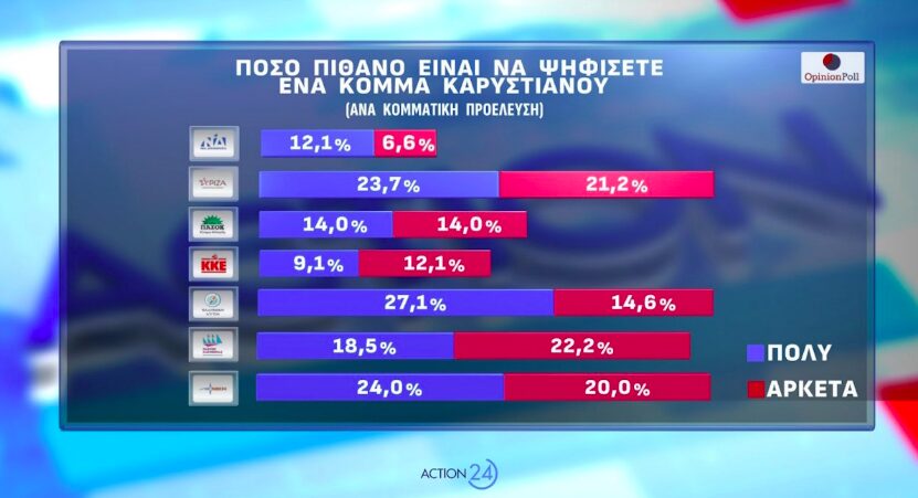 Opinion Poll: Σταθερά κάτω από 25% η Ν.Δ. στην πρόθεση ψήφου – Το «κόμμα Καρυστιανού» και η δεξαμενή των ψηφοφόρων του
