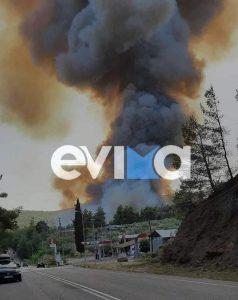 Η φωτιά έχει δύο πολύ μεγάλα μέτωπα και όπως δήλωσε ο δήμαρχος Μαντουδίου Λίμνης Αγίας Άννας στο evima.gr δίνεται εντολή να εκκενωθούν τα χωριά Ρετσινόλακος και Μουρτιά.