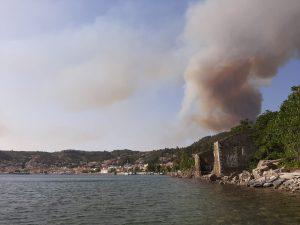 Σύμφωνα με νεότερη επικοινωνία που είχε το evima.gr με το δήμαρχο Γιώργο Τσαπουρνιώτη ανέφερε χαρακτηριστικά: « Η φωτιά συνεχίζει να καίει ανεξέλεγκτα. Έχουμε εκκενώσει χωριά και ξενοδοχεία. Το μέτωπο της φωτιάς είναι 10 χιλιόμετρα και έχει κάψει μία επιχείρηση και αρκετά σπίτια. Δεν είμαι σε θέση να σας πω αυτή τη στιγμή τον αριθμό. Η κατάσταση είναι πολύ δύσκολη. Αυτή τη στιγμή επιχειρούν επίγειες και εναέριες δυνάμεις».