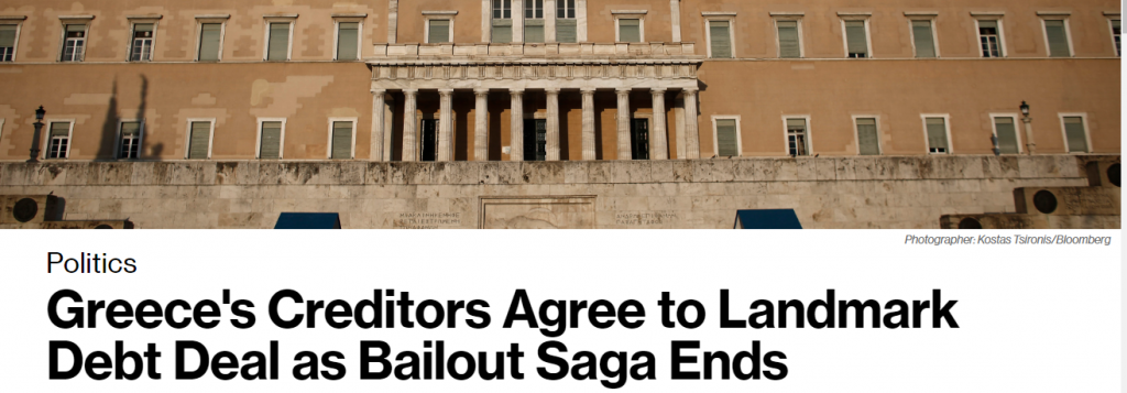 Οι υπουργοί Οικονομικών των κρατών μελών της ευρωζώνης ανακοίνωσαν τις πρώτες πρωινές ώρες σήμερα Παρασκευή την επίτευξη μιας συμφωνίας για να τερματιστούν οκτώ χρόνια οικονομικής κρίσης, σκληρών πολιτικών λιτότητας και προγραμμάτων στήριξης της οικονομίας της Ελλάδας.