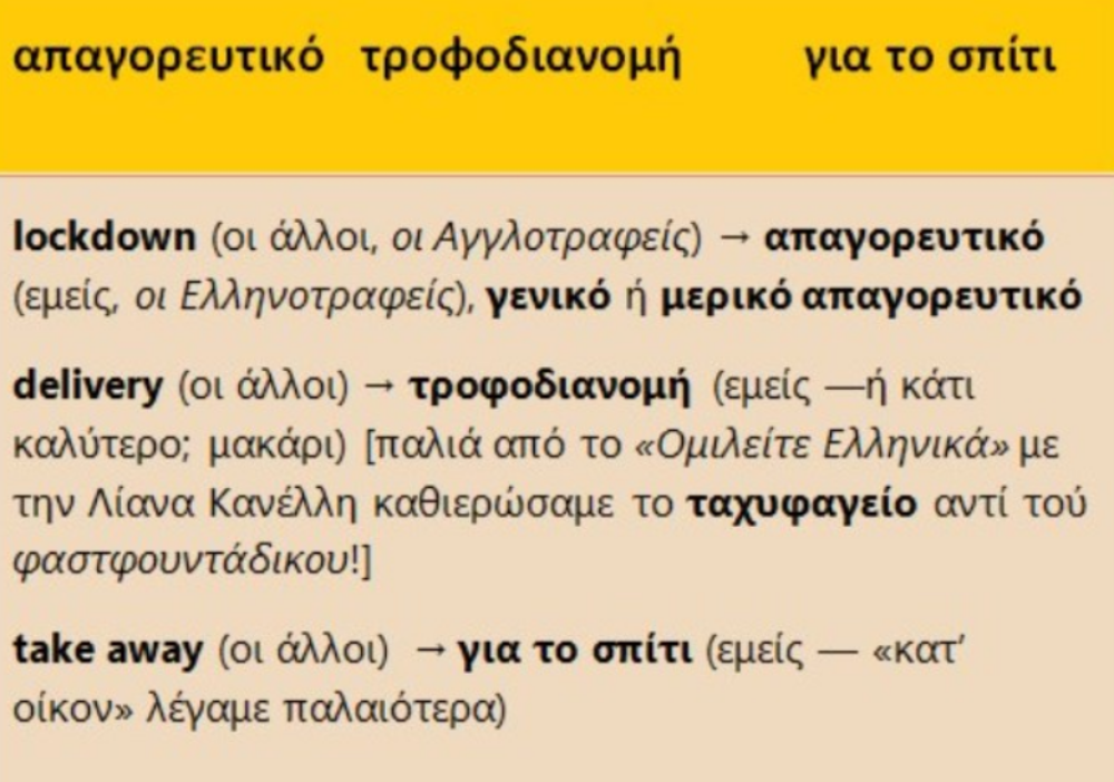 Πως είναι τα lockdown, delivery και take away στα ελληνικά
