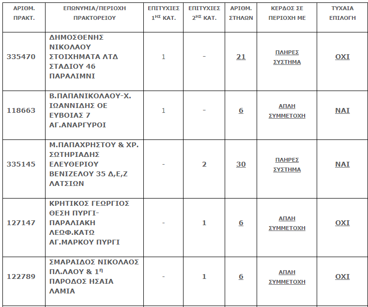 Επίσης, πέντε (5) επιτυχίες βρέθηκαν στην 2η κατηγορία (5) οι οποίες κερδίζουν το ποσό των €41.199,36 έκαστη.