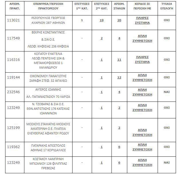 Επίσης, 8 τυχερά δελτία βρέθηκαν στην 2η κατηγορία (5), εκ των οποίων το ένα φέρει δύο επιτυχίες και τα οποία κερδίζουν το ποσό των € 5.523,84 για κάθε επιτυχία.