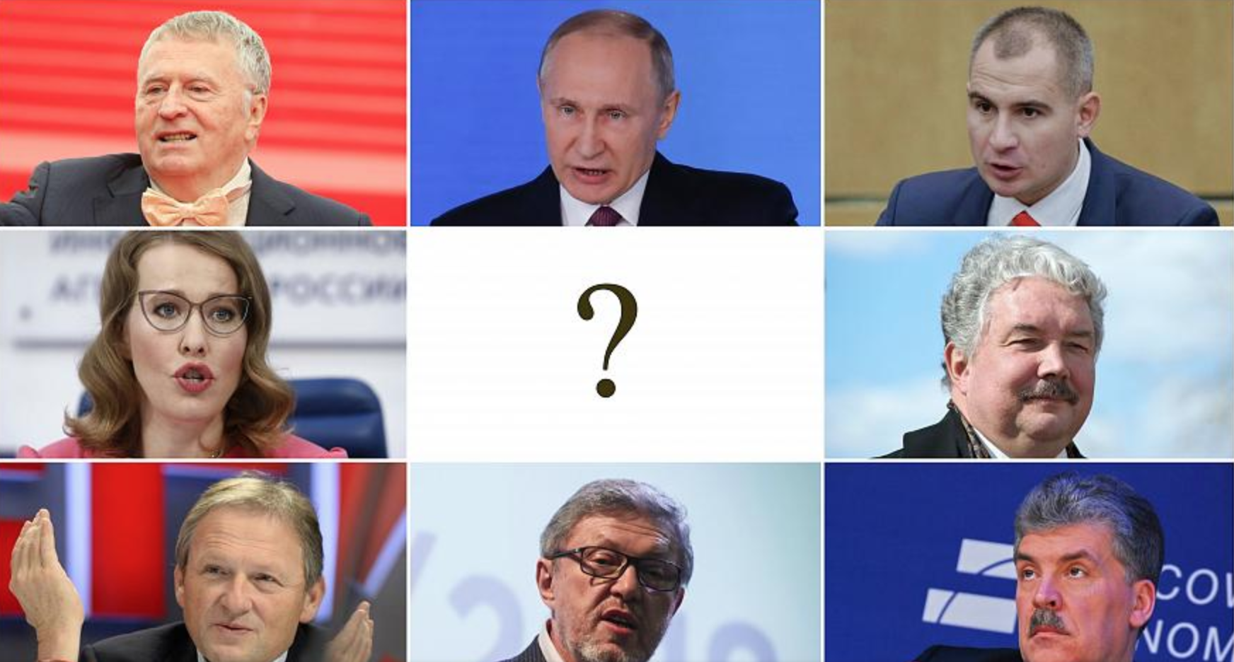 Στη δεύτερη θέση, ο υποψήφιος του Κομμουνιστiκού Κόμματος Πάβελ Γκρουντίνιν εξασφαλίζοντας το 11,2%, μπροστά από τον υπερεθνικιστή Βλαντίμρ Ζιρινόφκσι (6,7%) και την προσκείμενη στη φιλελεύθερη αντιπολίτευση δημοσιογράφο Ξένια Σαμπτσάκ (2,5%) , έπειτα από μία άτονη εκλογική διαδικασία που διασφαλίζει ότι ο Πούτιν θα παραμείνει στην εξουσία μέχρι το 2024.
