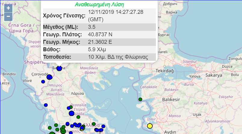Σεισμός σημειώθηκε πριν λίγη ώρα στη Φλώρινα, με το Γεωδυναμικό Ινστιτούτο του Αστεροσκοπείου Αθηνών να αναφέρει ότι πρόκειται για δόνηση της τάξης των 3,5 Ρίχτερ.