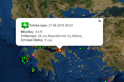Σεισμός έγινε αισθητός στην Αττική στις 9:24 σήμερα το πρωί.