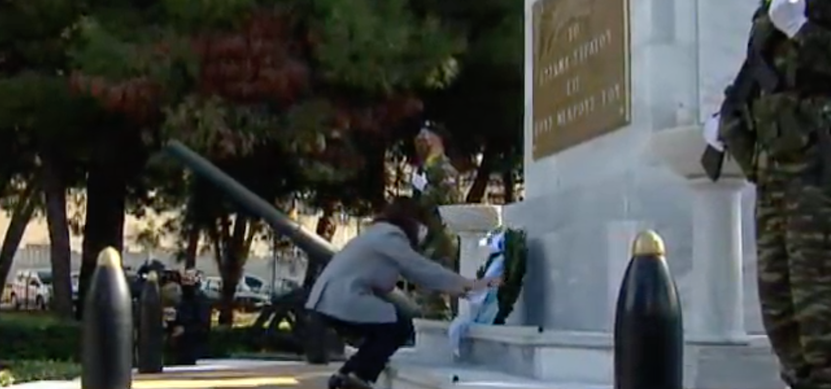 Πριν λίγο στο ηρώο του Γ. Σώματος Στρατού κατέθεσε στεφάνι η Πρόεδρος της Δημοκρατίας ενώ στον ουρανό πετούσαν μαχητικά αεροσκάφη. Ενός λεπτού σιγή τηρήθηκε στο χώρο.