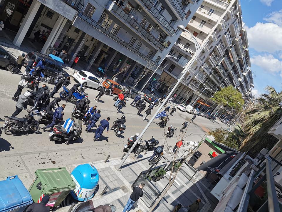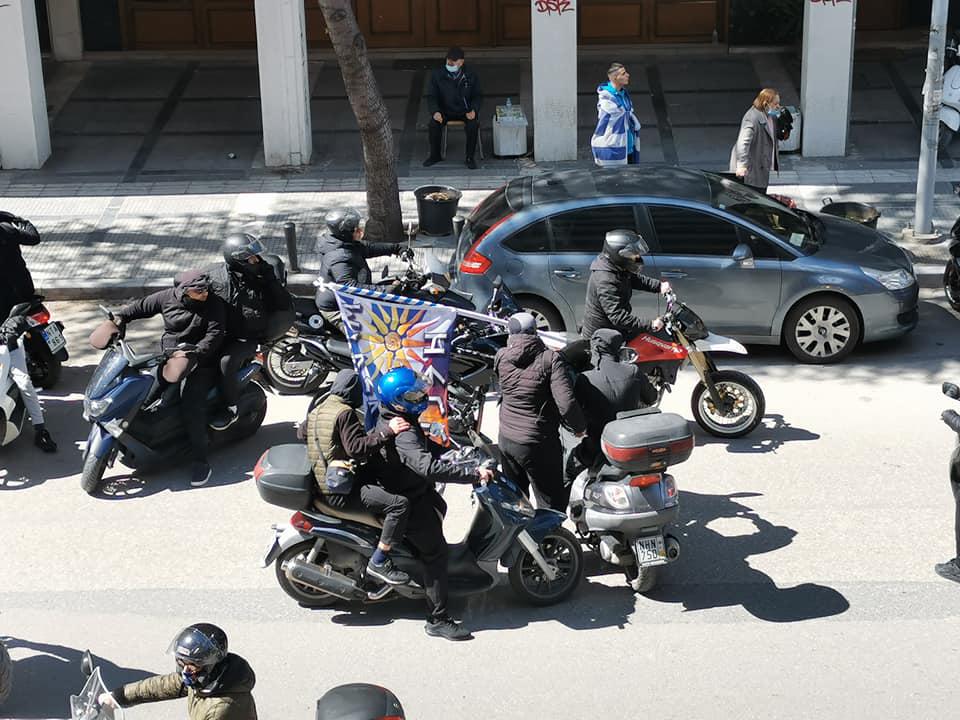 Οι ακροδεξιοί με σημαίες και μηχανές έφτασαν στην κατάληψη, όπου και στο παρελθόν έχουν επιτεθεί όμως με την παρέμβαση της αστυνομίας αναγκάστηκαν να αποχωρήσουν και αποφεύχθηκαν τα χειρότερα.