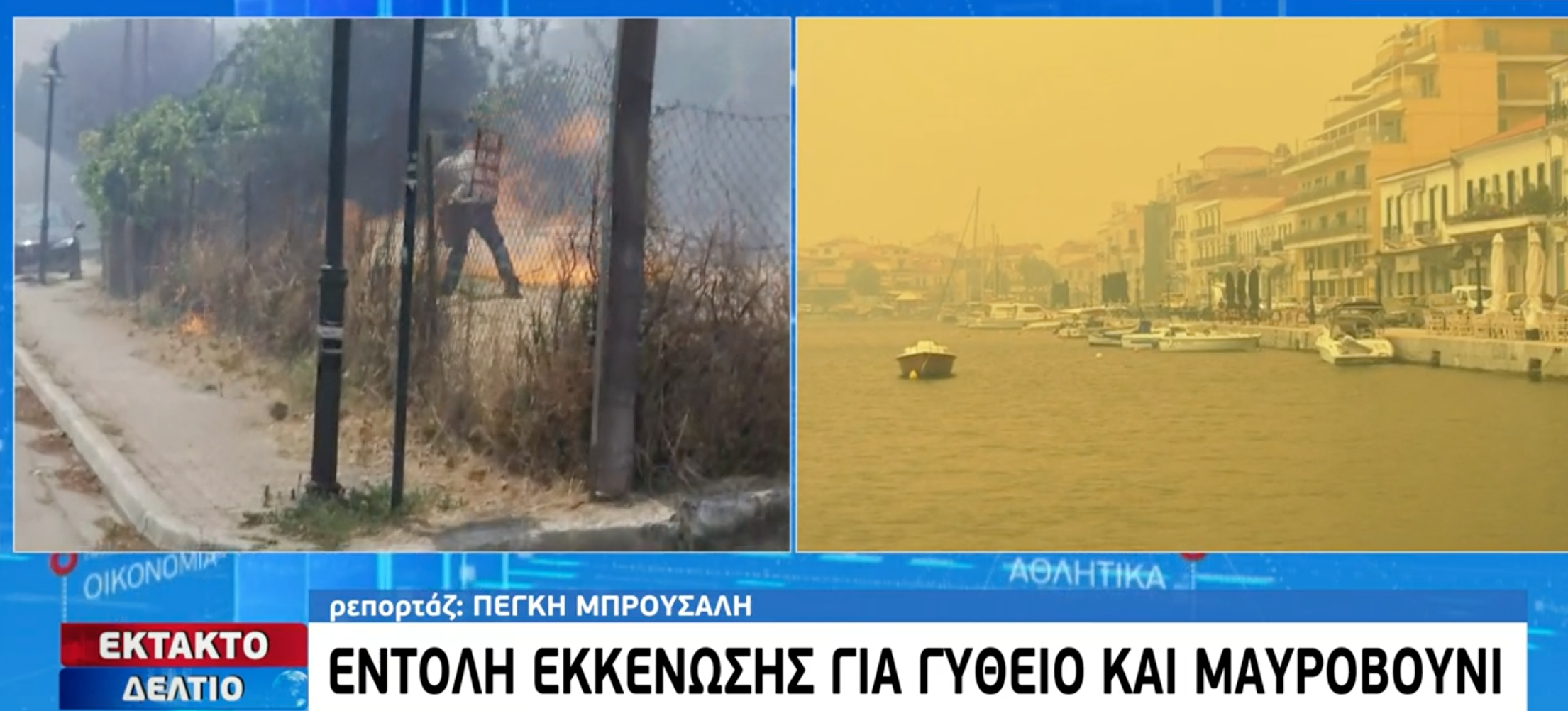 Έτοιμο για εκκένωση αυτή τη στιγμή το Γύθειο καθώς η φωτιά στο Μαυροβούνι, βρίσκεται ήδη στις παρυφές της παραθαλάσσιας πόλης.