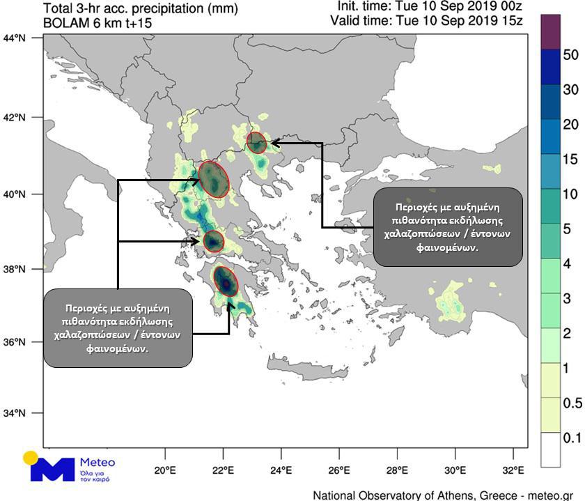 Τα φαινόμενα θα είναι κατά τόπους ισχυρά, με τοπικές χαλαζοπτώσεις κυρίως στα βόρεια, σύμφωνα με τη μετεωρολογική υπηρεσία meteo του Εθνικού Αστεροσκοπείου Αθηνών, που επισημαίνει ότι ιδιαίτερη προσοχή απαιτείται στις μετακινήσεις στο οδικό δίκτυο της ηπειρωτικής χώρας κατά τη διάρκεια των φαινομένων, δηλαδή τις μεσημεριανές και απογευματινές ώρες της Τρίτης.