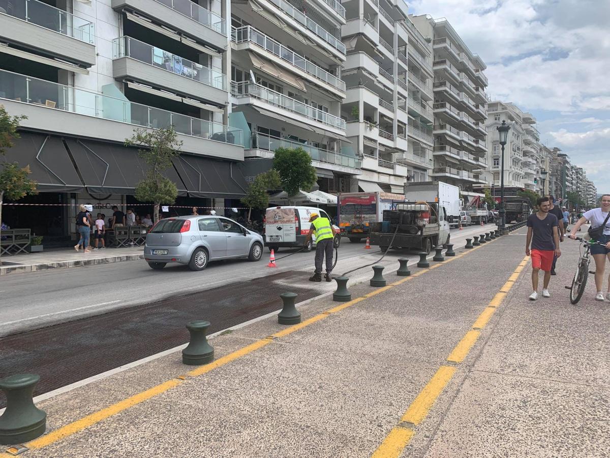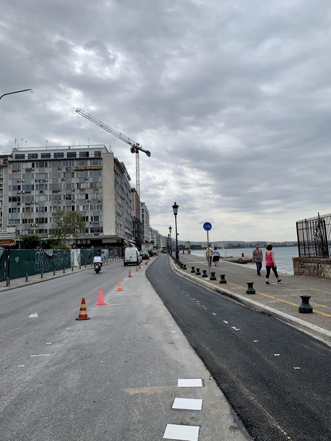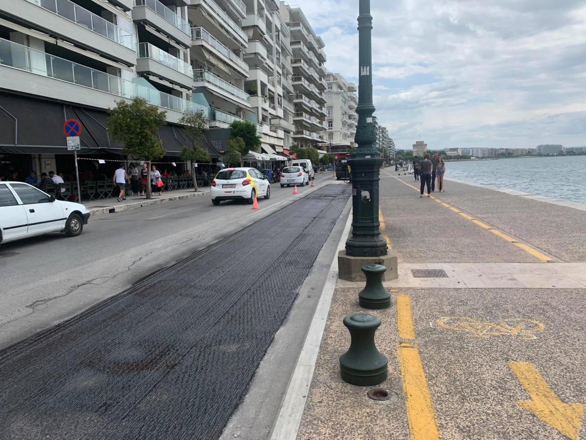 Ξεκίνησαν σήμερα οι εργασίες από τα συνεργεία του δήμου Θεσσαλονίκης για την μεταφορά του ποδηλατόδρομου από το πλακόστρωτο της Παλιάς Παραλίας στη δεξιά πλευρά του οδοστρώματος της παραλιακής Λεωφόρου Νίκης.
