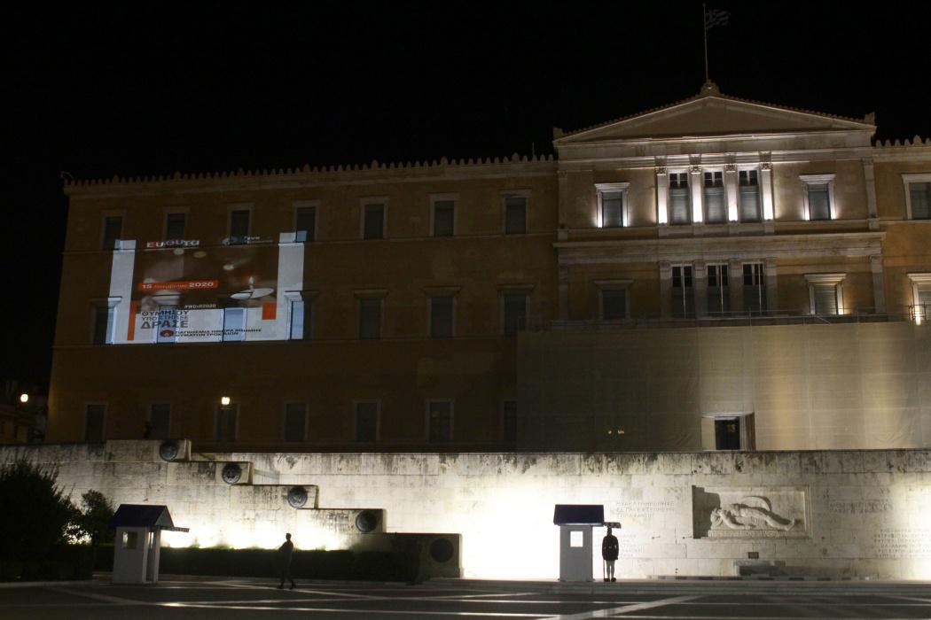 Προβολή της αφίσας για την Παγκόσμια Ημέρα Μνήμης Θυμάτων Τροχαίων στην πρόσοψη της Βουλής