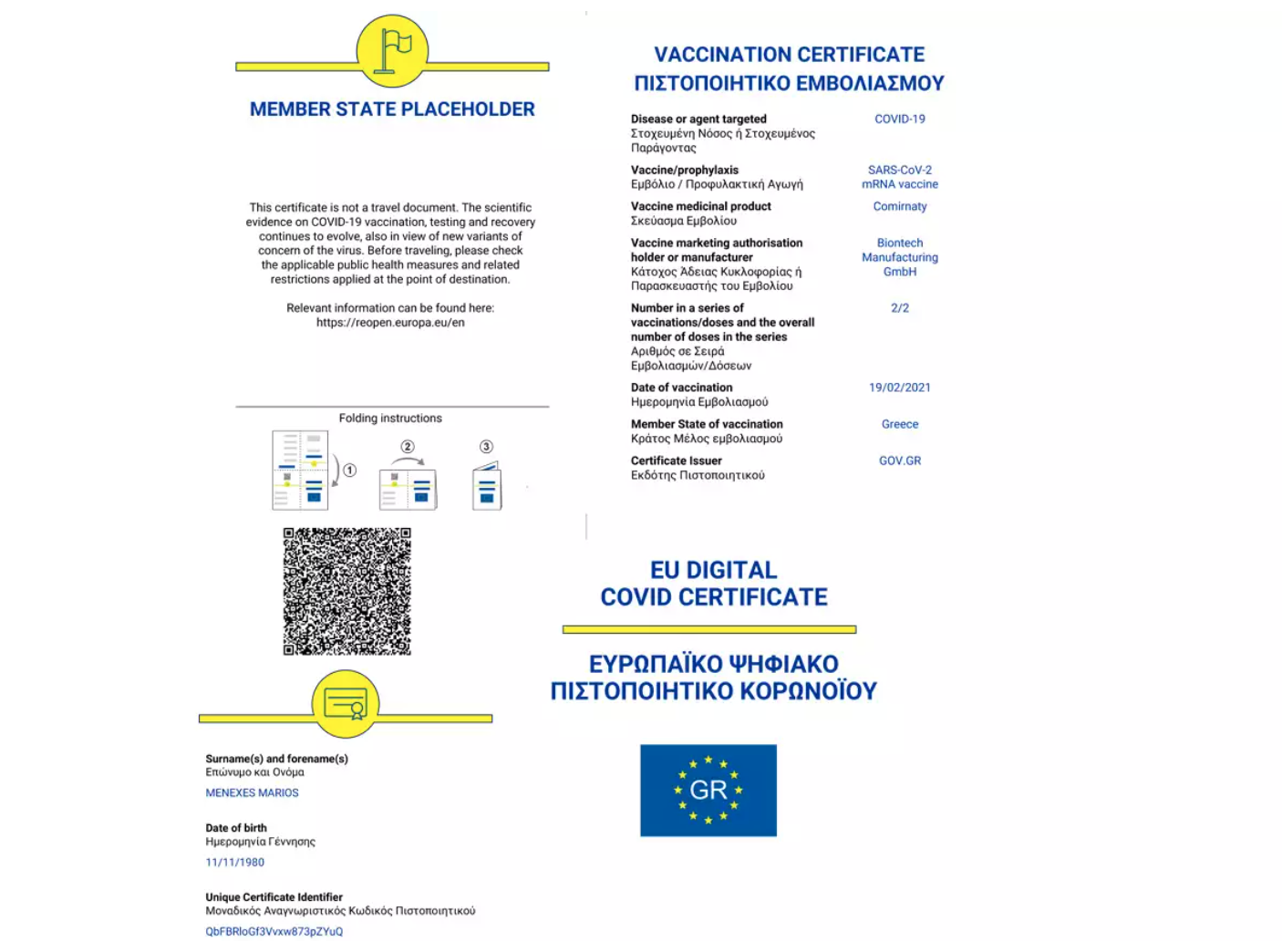 Το Ευρωπαϊκό Ψηφιακό Πιστοποιητικό COVID μπορεί να εκδοθεί: