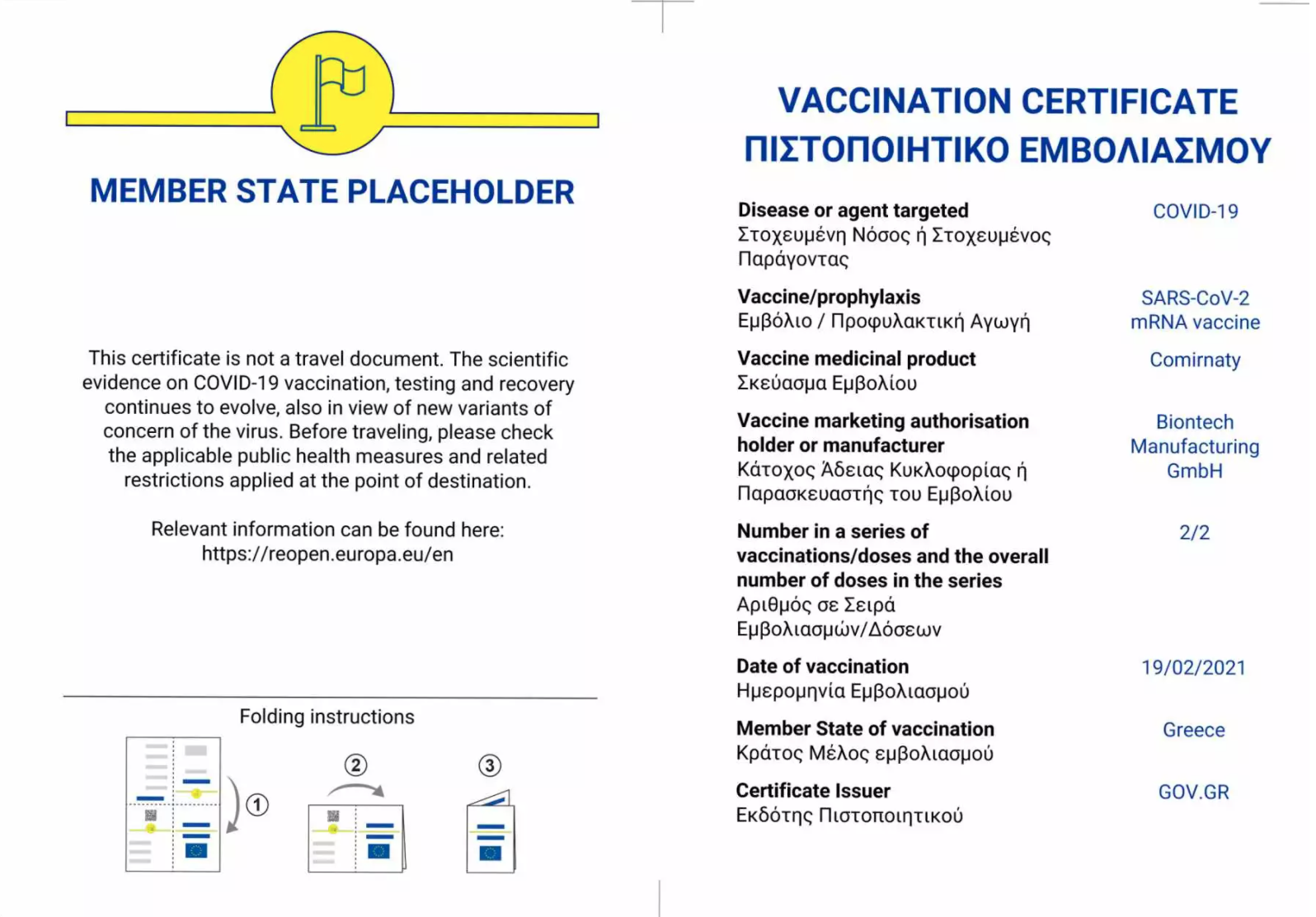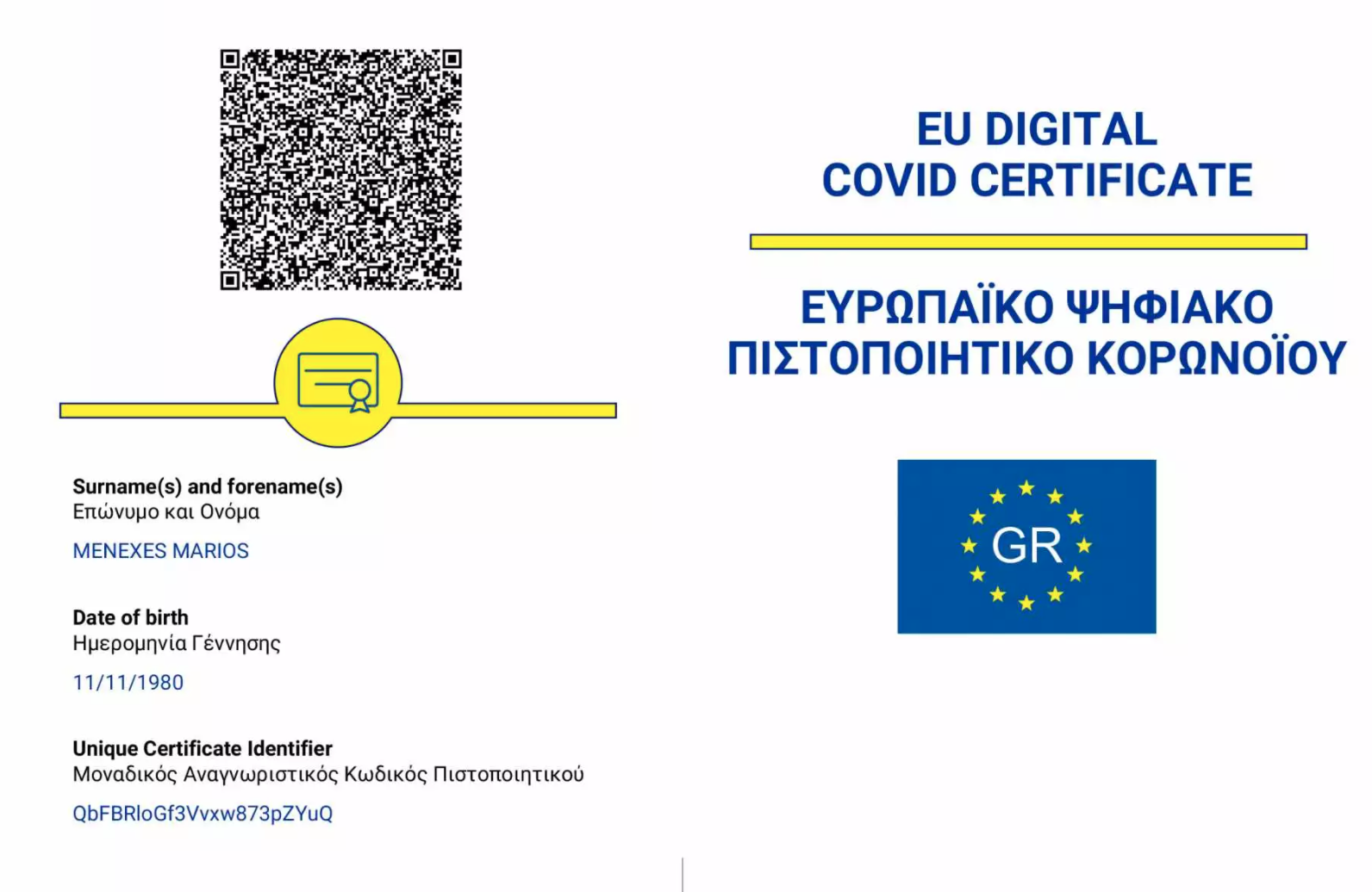 Το Ευρωπαϊκό Ψηφιακό Πιστοποιητικό COVID αποτελεί την ψηφιακή απόδειξη ότι ένα πρόσωπο: