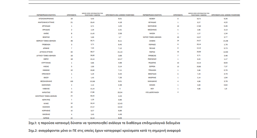 Ανακοινώθηκαν τα νέα κρούσματα κοροναϊού στην Ελλάδα από τον Εθνικό Οργανισμό Δημόσιας Υγείας. Διαβάστε αναλυτικά την επίσημη ανακοίνωση: