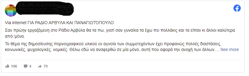 Την ανάρτηση της εργαζόμενης στο Ράδιο Αρβύλα έχουν κάνει repost και άλλοι χρήστες του Facebook: