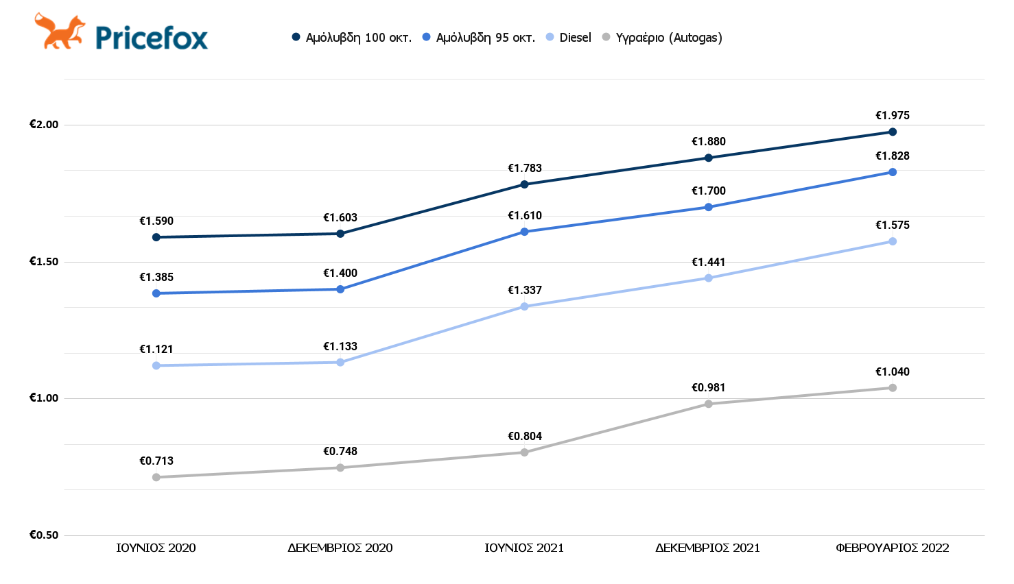 Σύμφωνα με τα στοιχεία του Υπουργείου ανάπτυξης και Ανταγωνιστικότητας, φαίνεται πως το 2020 οι τιμές της απλής βενζίνης άγγιζαν το 1,400€/λίτρο. Μέσα στο πρώτο εξάμηνο του 2021 οι τιμές έφτασαν στο 1,610€/λίτρο, ενώ η χρονιά έκλεισε με τους οδηγούς να πληρώνουν για απλή αμόλυβδη 1,700€/λίτρο. Η έκρηξη τιμών ήρθε τον Φεβρουάριο του 2022 με τους οδηγούς να έρχονται αντιμέτωποι στα πρατήρια καυσίμων με τιμές που εκτοξεύτηκαν στο 1,828€/λίτρο.