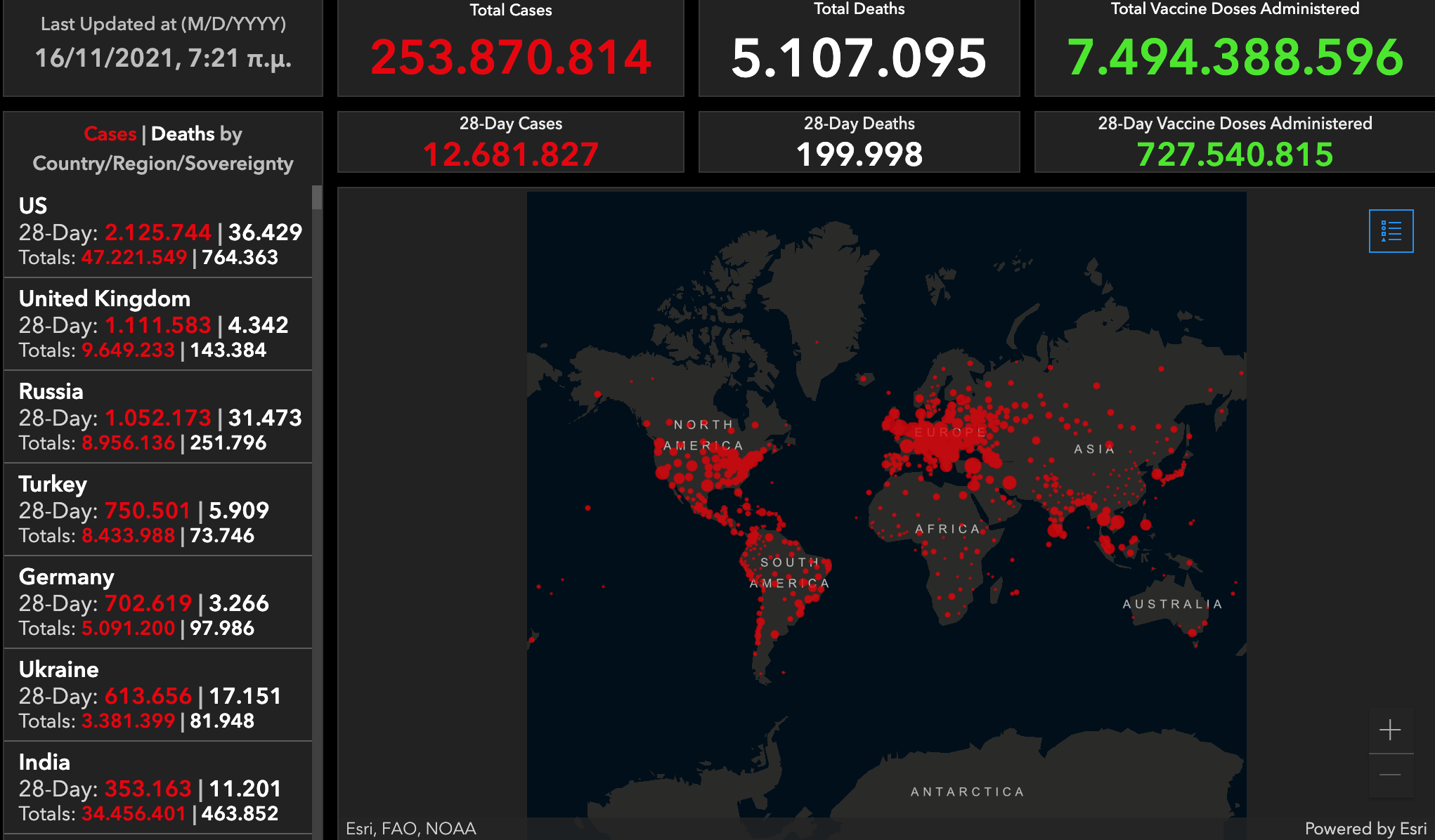 Η κατάσταση με την πανδημία στον πλανήτη.
